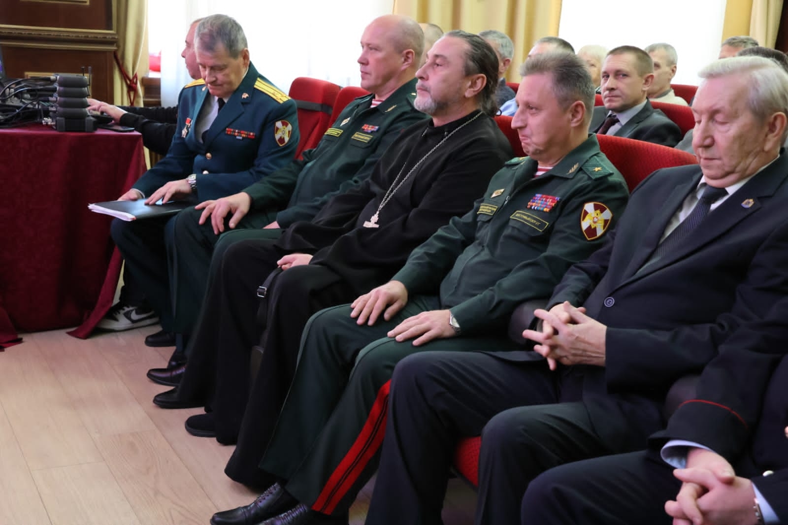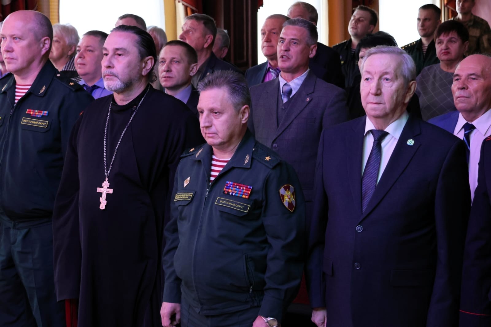 Отец Алексей, как помощник командующего Восточного округа войск Росгвардии по работе с верующими, обратился с поздравлением к ветеранам, пожелав им Божией помощи в их трудах: