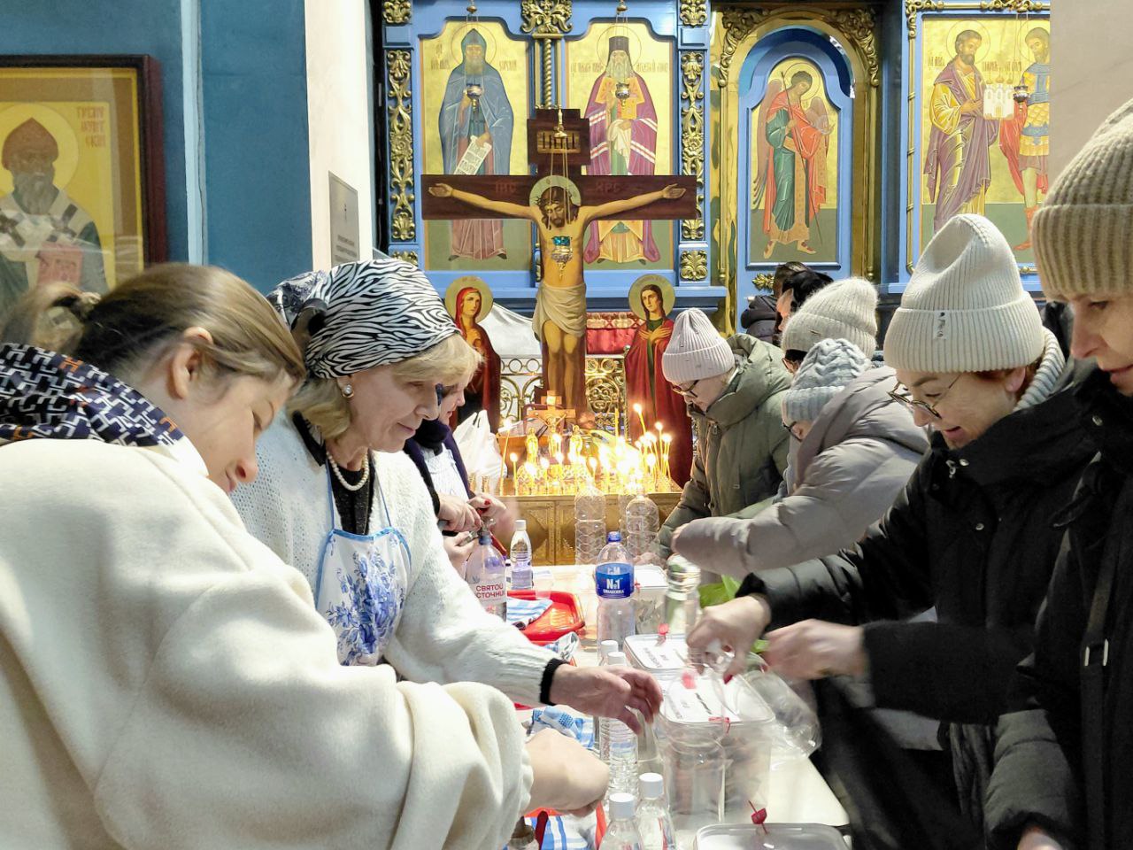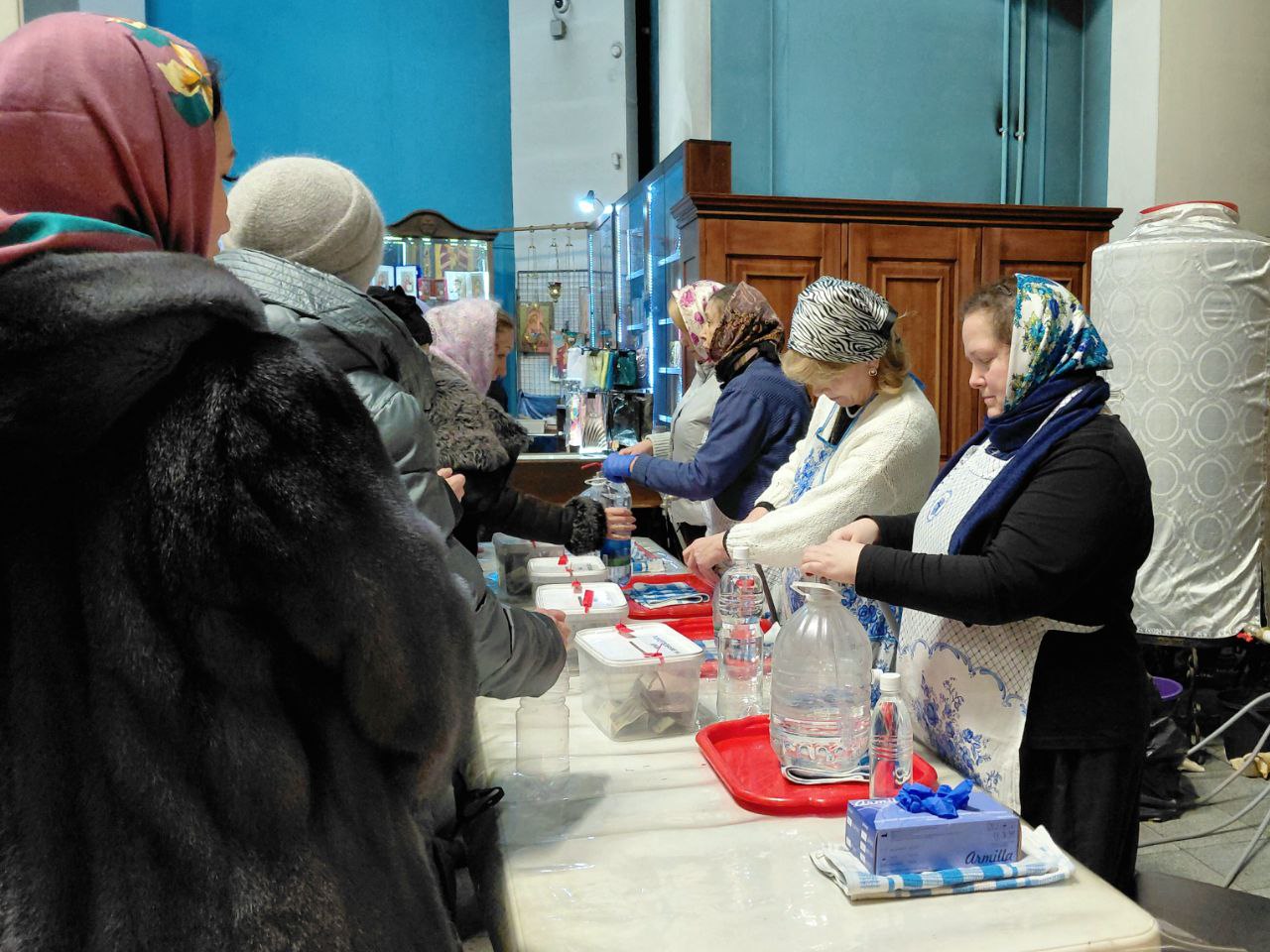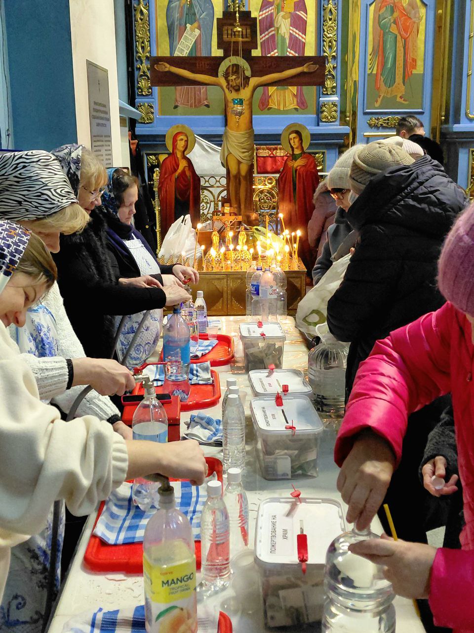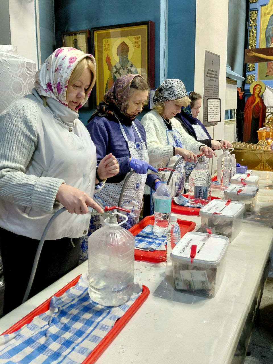 В этот день хабаровчане могли набрать Святую воду в Успенском соборе течении всего дня, ее с радостью разливали прихожанки.
