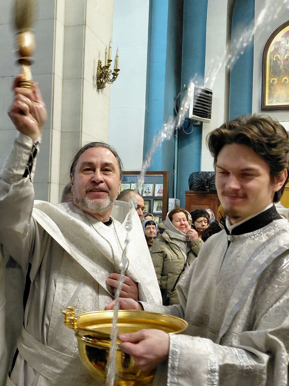 19 января 2026 года, в праздник Святого Богоявления — Крещения Господа Бога и Спаса нашего Иисуса Христа, в Градо-Хабаровском соборе Успения Божией Матери настоятель храма иерей Дионисий Ногтев возглавил Божественную литургию.