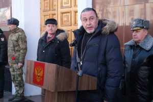 Клирик Успенского собора принял участие в митинге, посвященном памяти военнослужащих Восточного округа войск нацгвардии