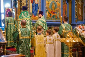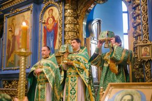 Божественную литургию возглавил настоятель собора иерей Дионисий Ногтев в сослужении клириков собора.