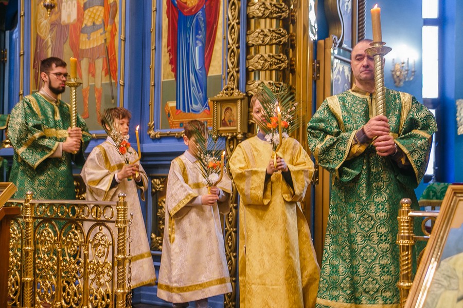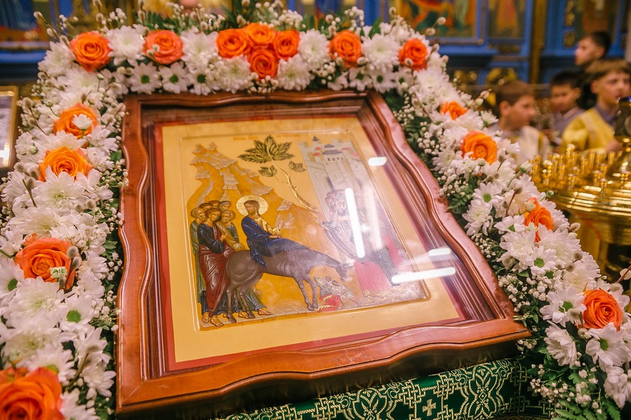 Вход Господень в Иерусалим празднуется в последнее воскресенье перед Пасхой, в этот день воспоминаются события, когда Господь въехал в город верхом на молодом осле, а народ встречал его, устилая дорогу пальмовыми ветвями и одеждой, и восклицая: «Осанна! Благословен грядущий во имя Господне, Царь Израилев!» (Ин.12:12).