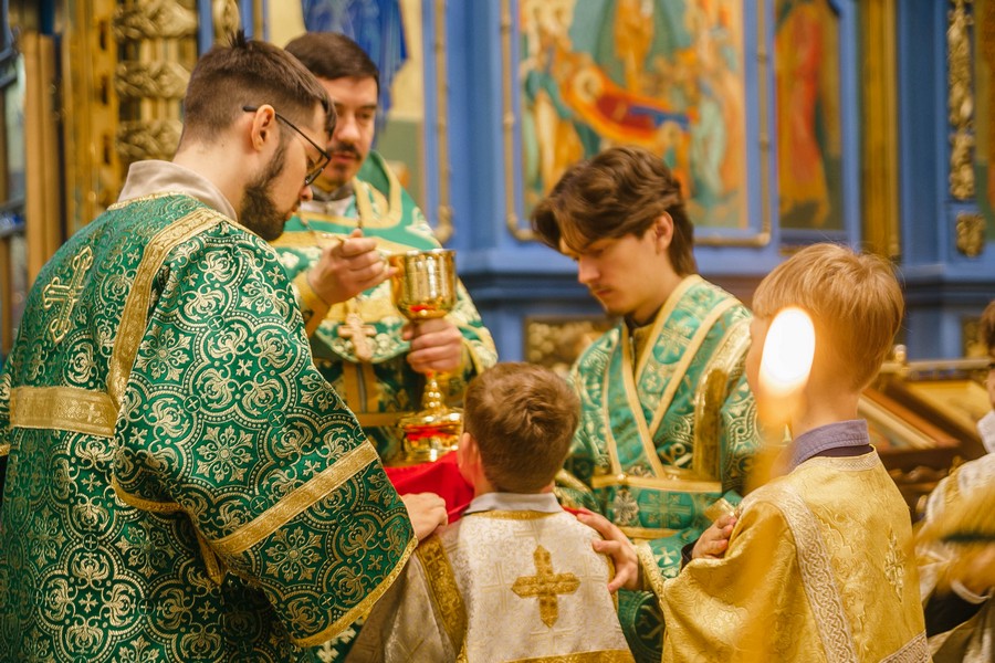 5 апреля 2026 года, в праздник Входа Господня в Иерусалим, в Градо-Хабаровском соборе Успения Божией Матери состоялось праздничное богослужение.