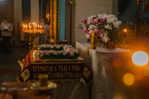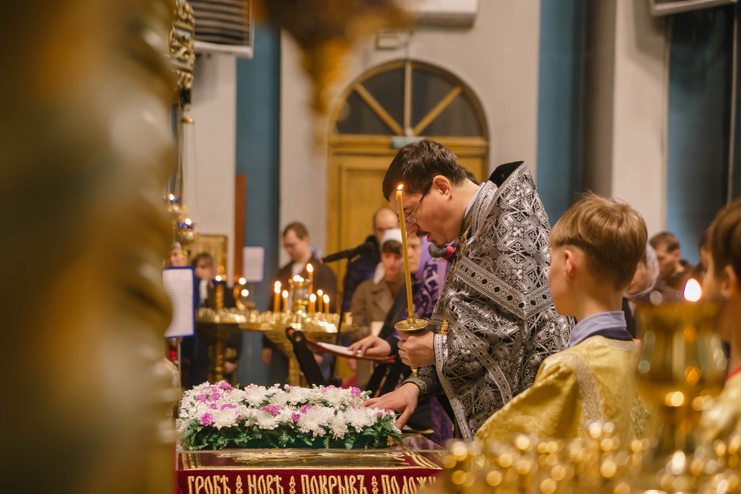 Традиционно, в храмах в Великую пятницу, в третий час дня (в час смерти Христа) Плащаницу Спасителя выносят из алтаря на середину, к ней прикладываются прихожане. Плащаница – плат материи с вышитым на нем изображением Тела Христа в гробу.
