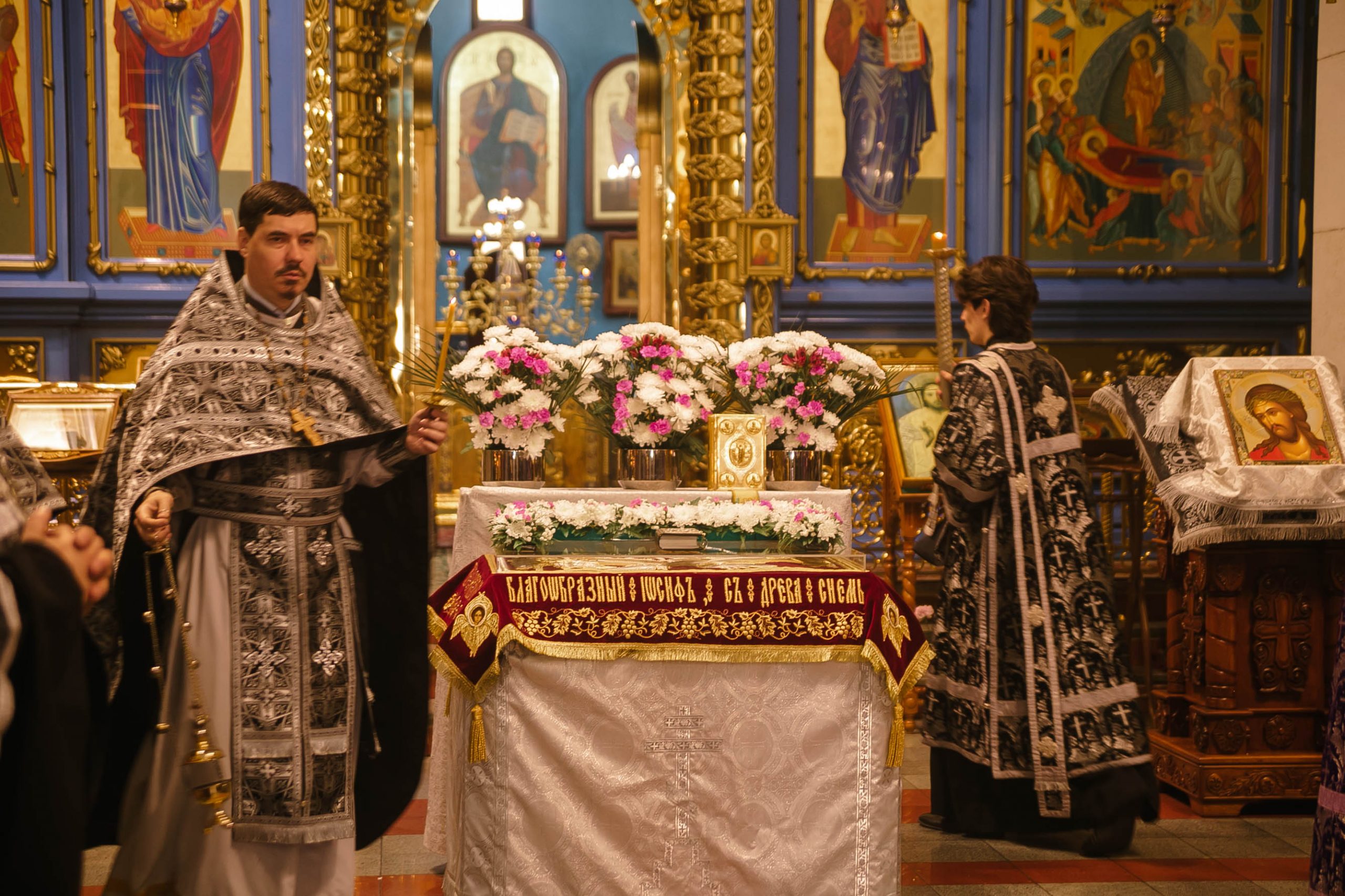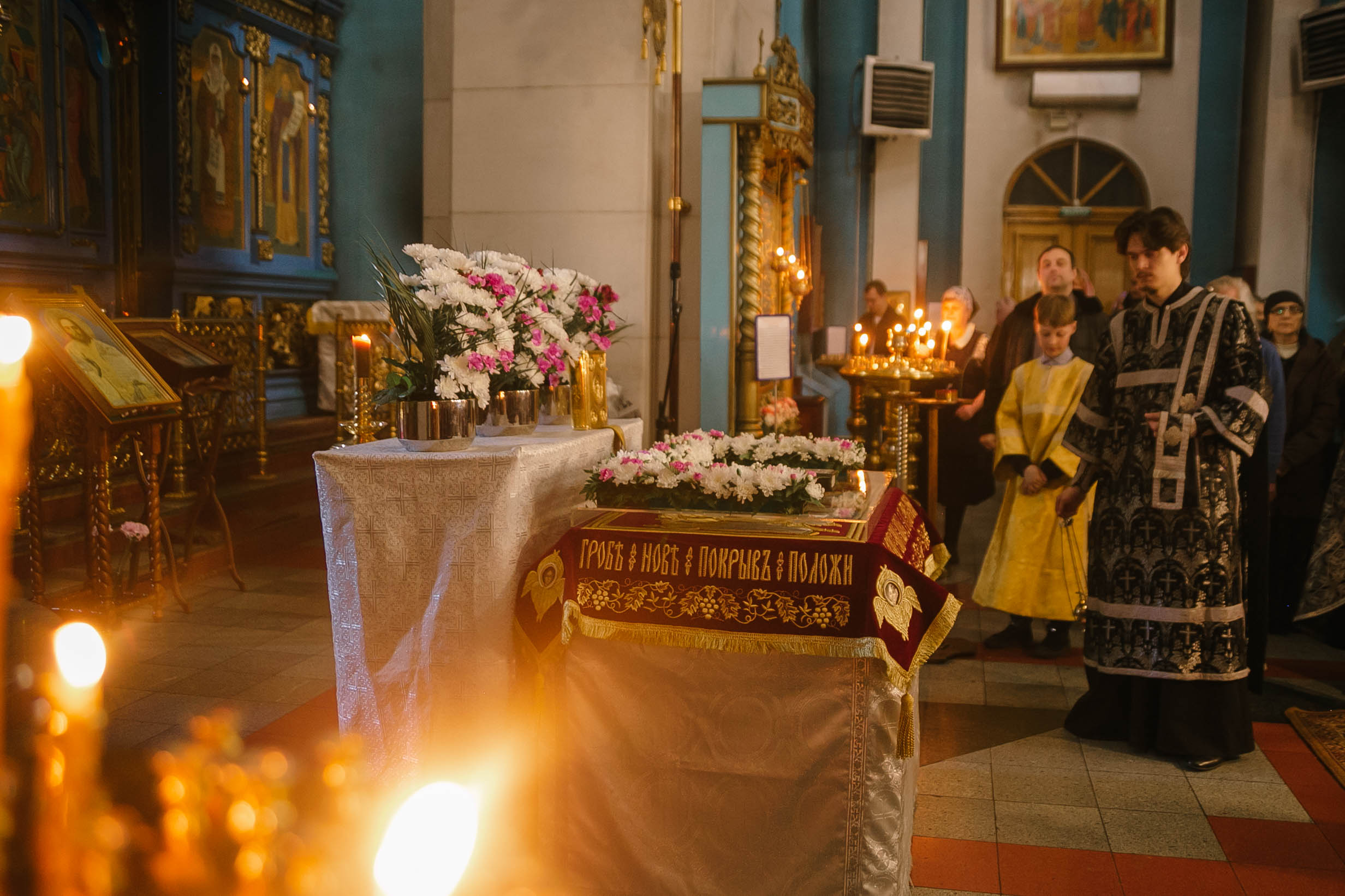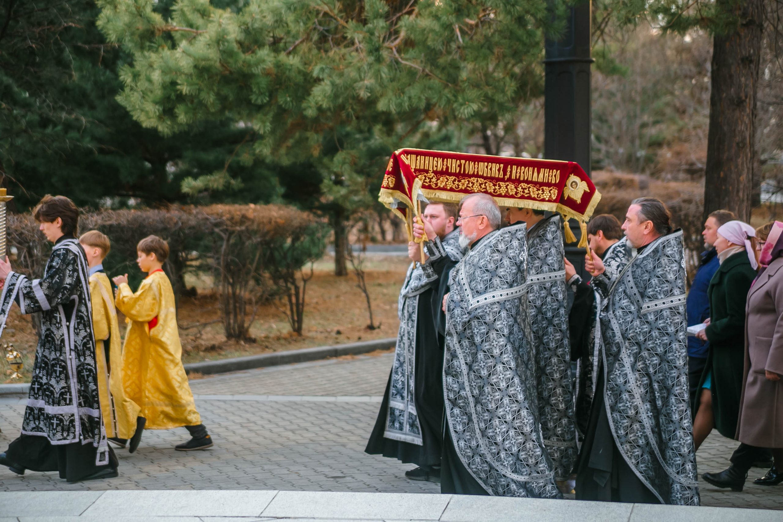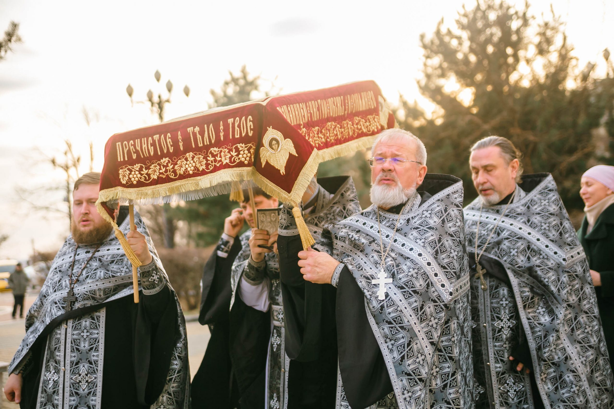10 апреля 2026 года, в Великую пятницу, в Градо-Хабаровском соборе Успения Божией Матери состоялось Вечернее богослужение с выносом Плащаницы Спасителя и Чином погребения.