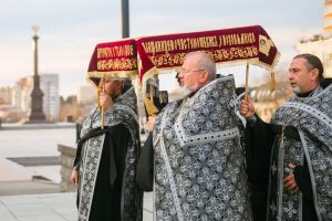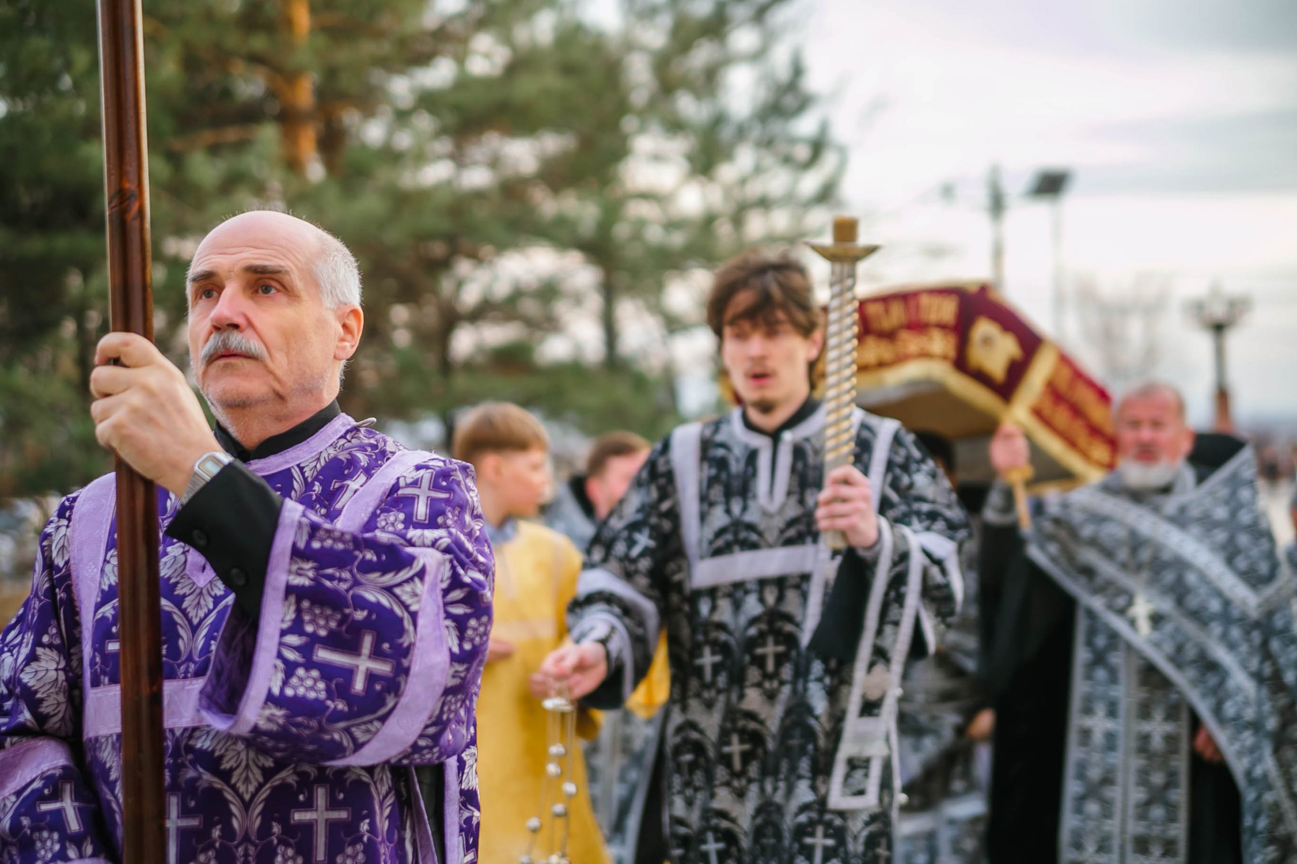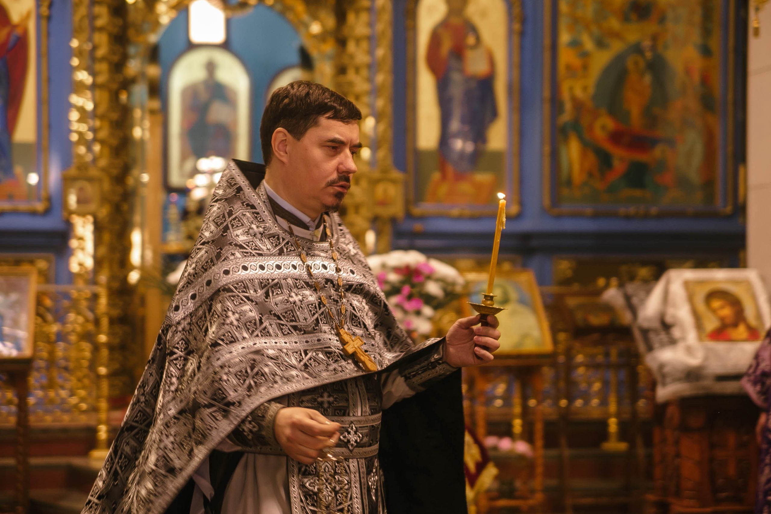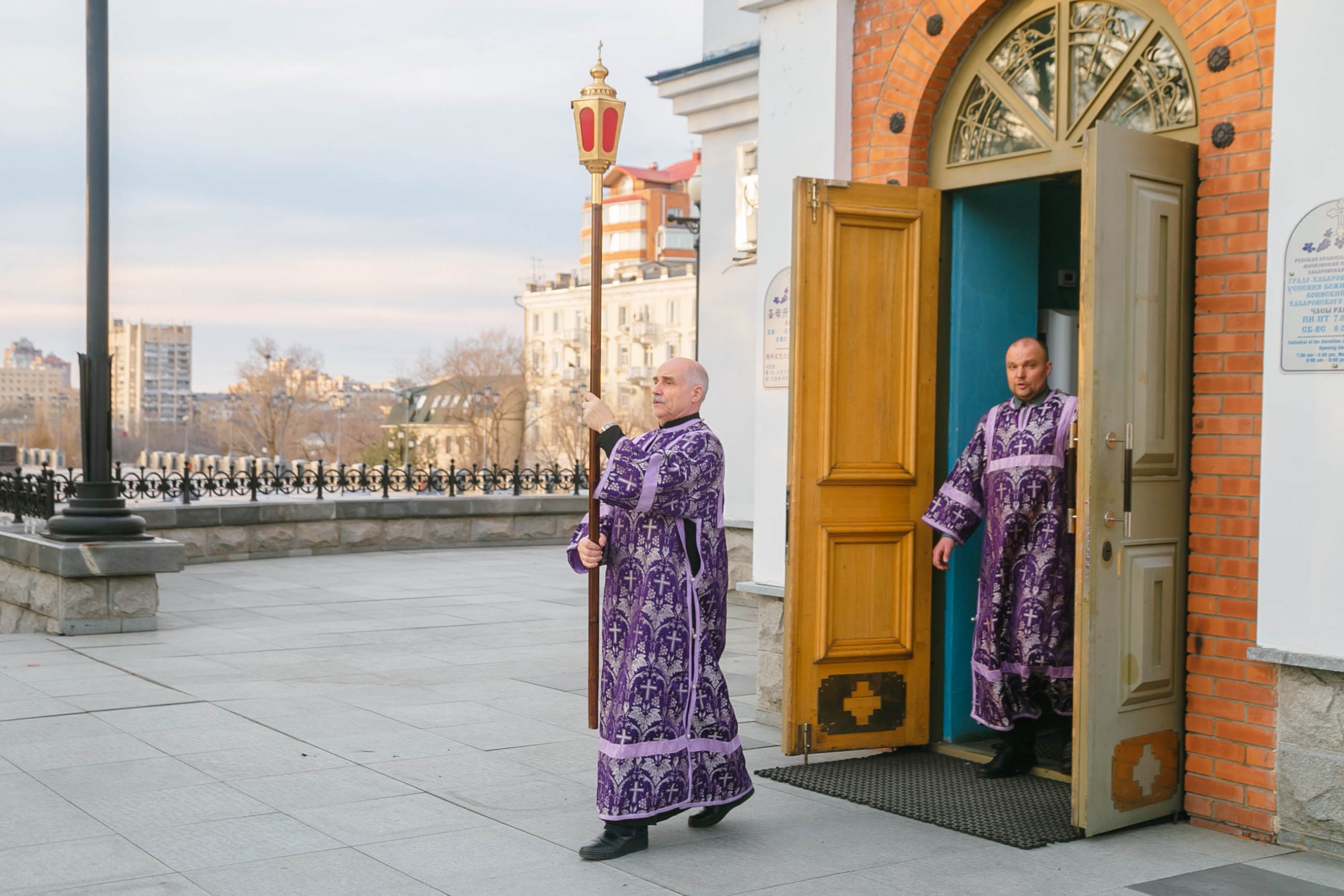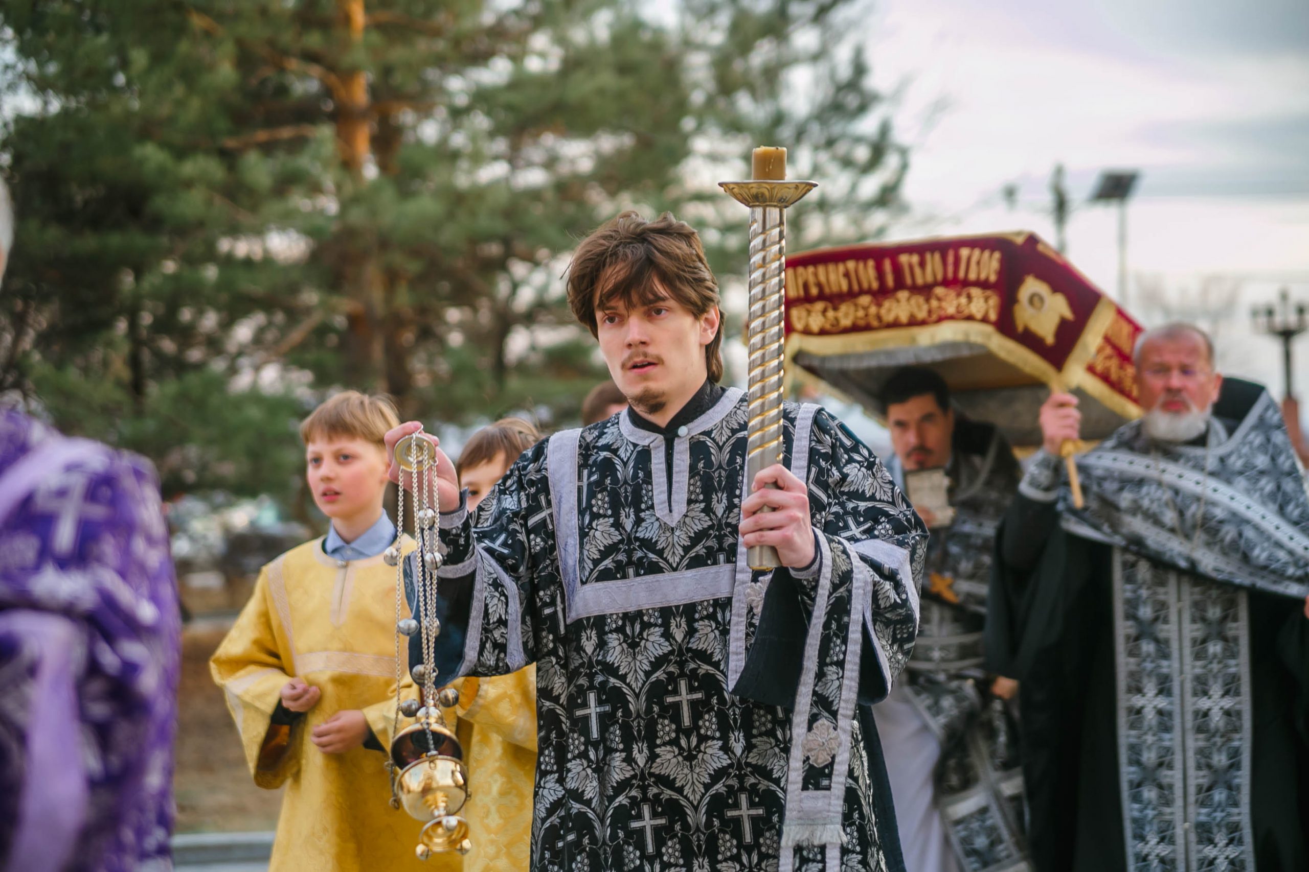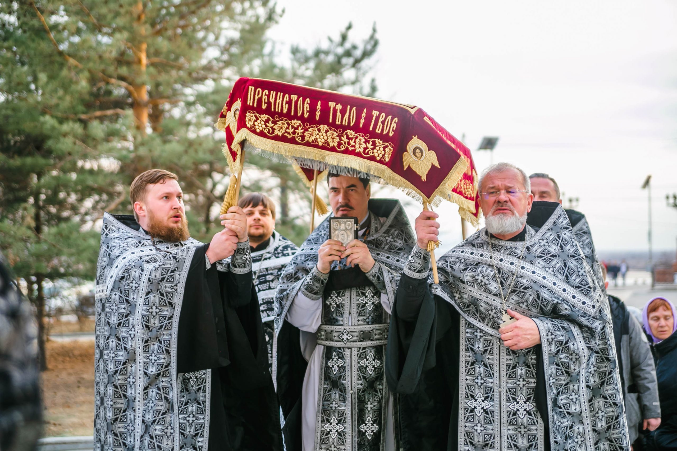 10 апреля 2026 года, в Великую пятницу, в Градо-Хабаровском соборе Успения Божией Матери состоялось Вечернее богослужение с выносом Плащаницы Спасителя и Чином погребения.