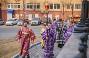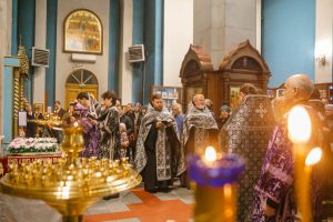 Богослужение возглавил настоятель Успенского собора иерей Дионисий Ногтев в сослужении клириков собора.