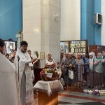 Возглавил праздничное богослужение настоятель Успенского собора иерей Дионисий Ногтев в сослужении иерей Алексея Шарапы.