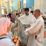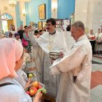 После окончания Литургии отец Дионисий совершил освящение плодов нового урожая, принесенных прихожанами.