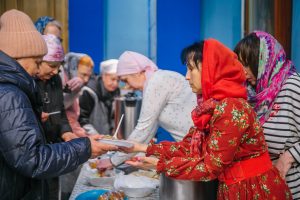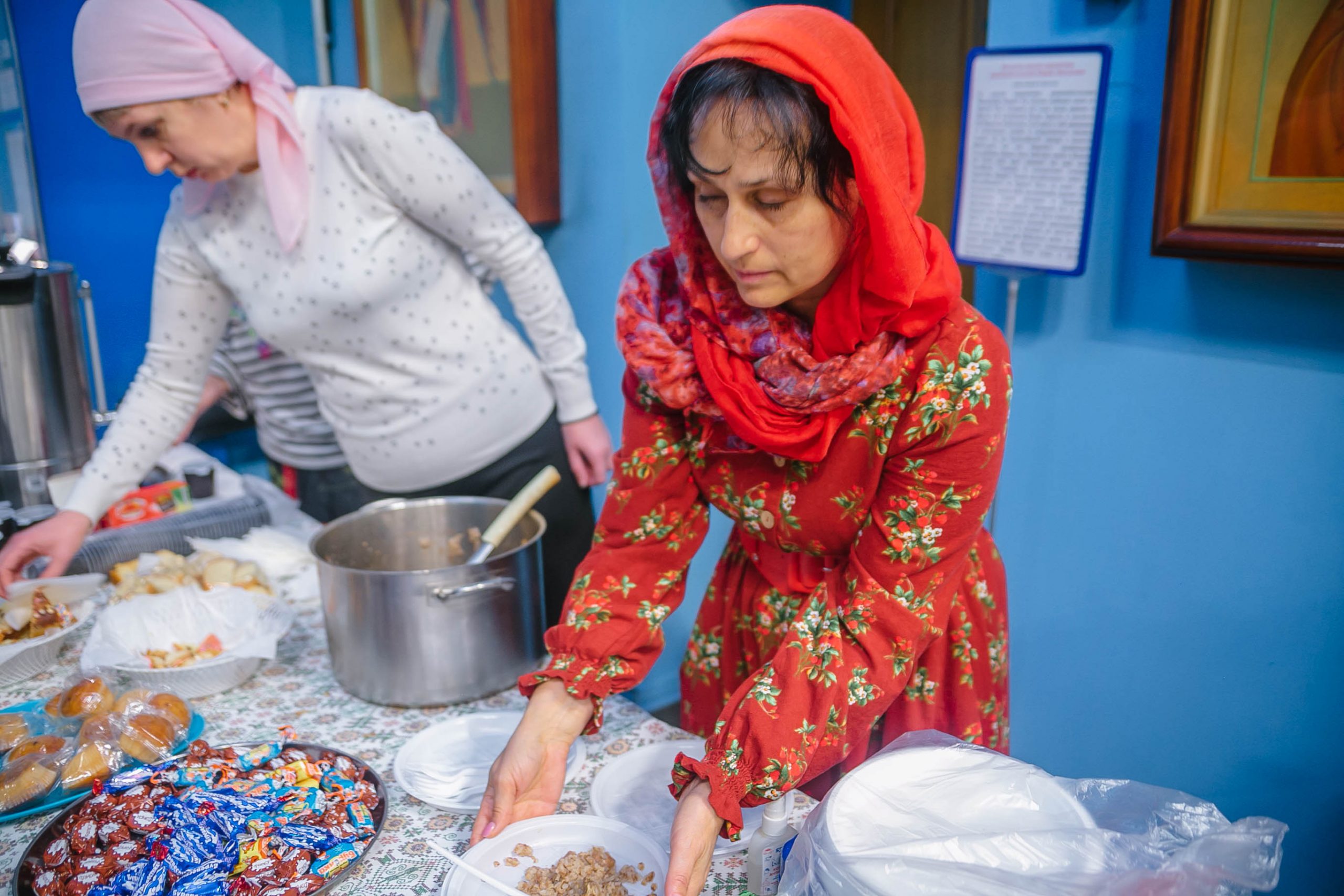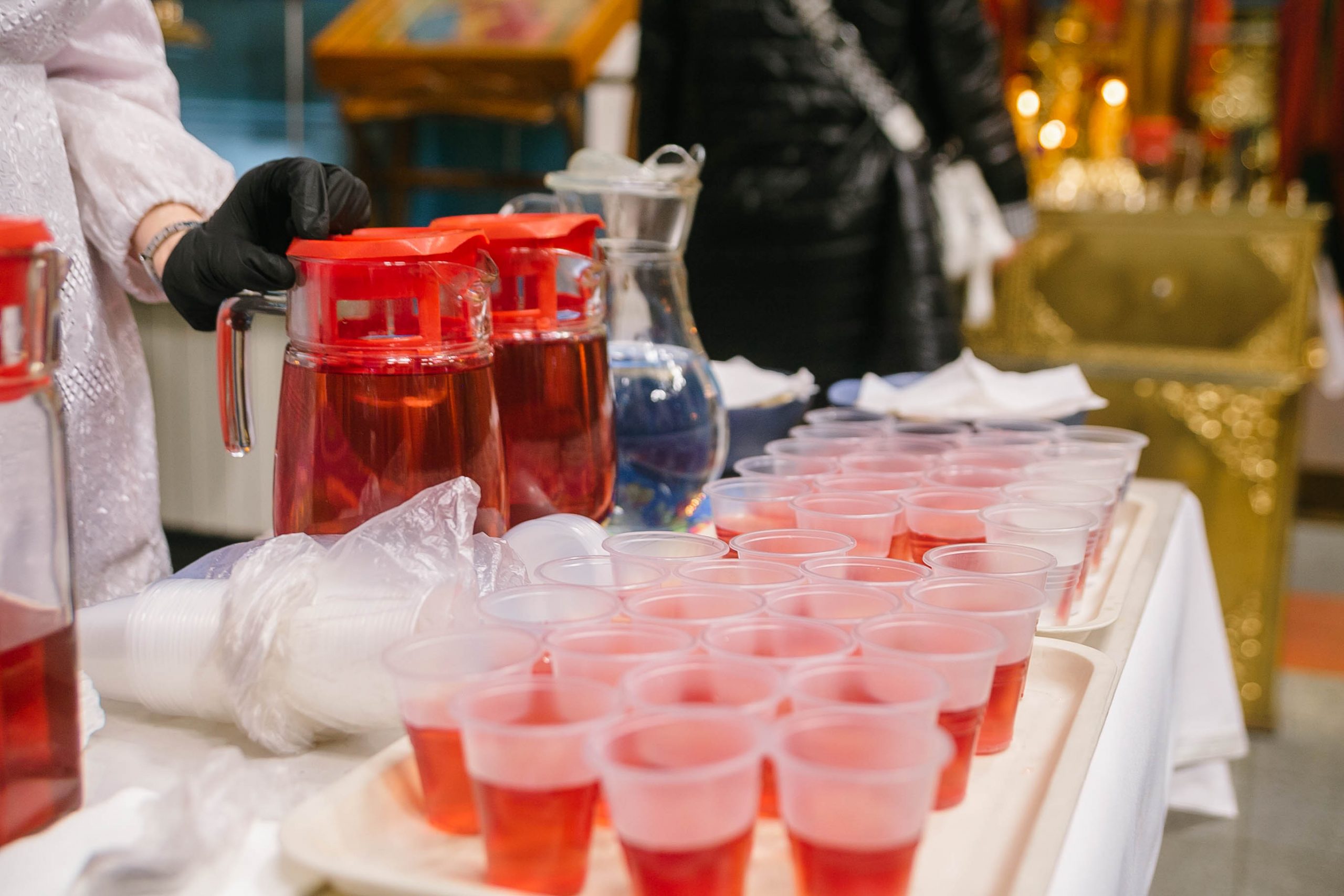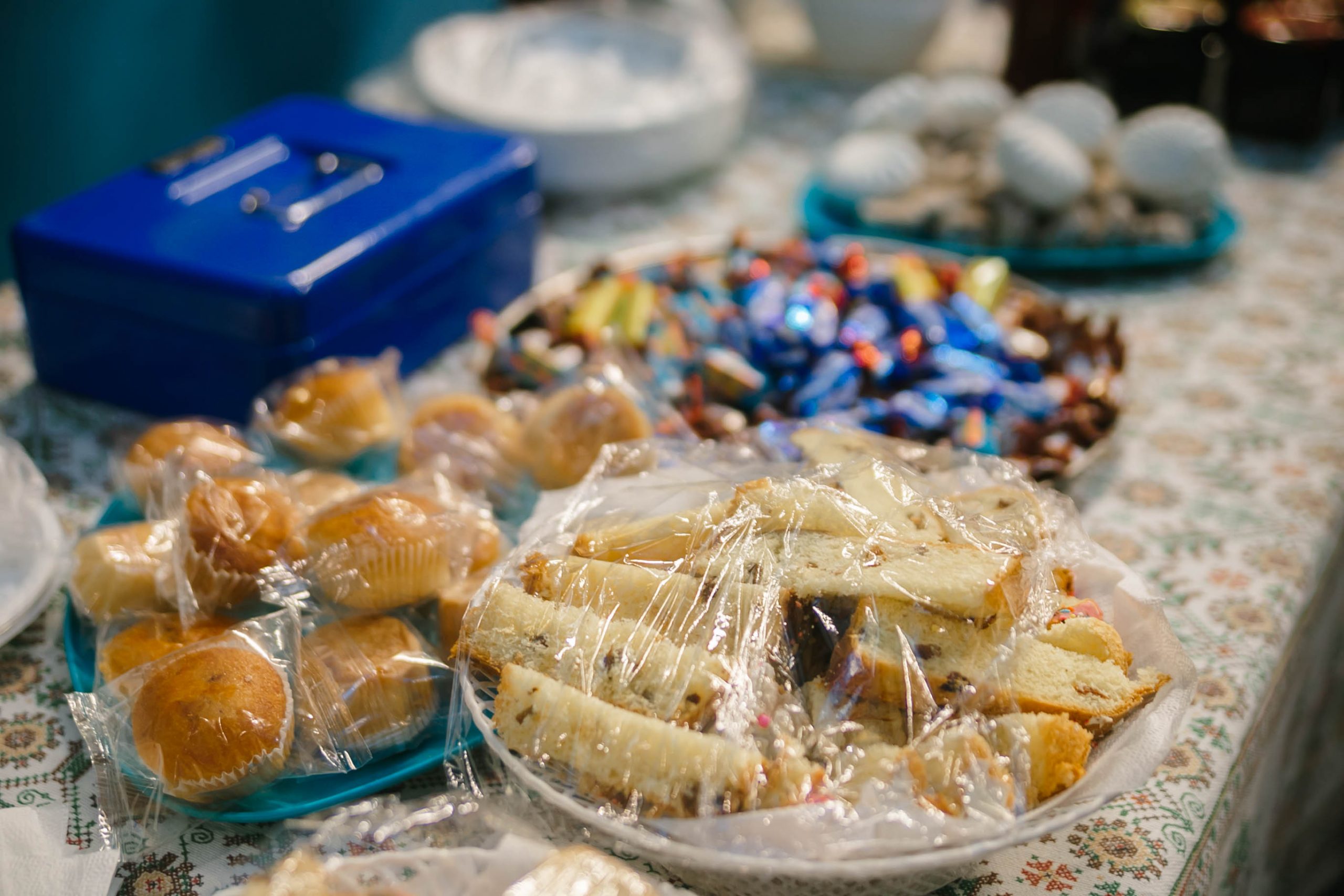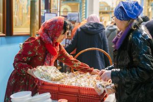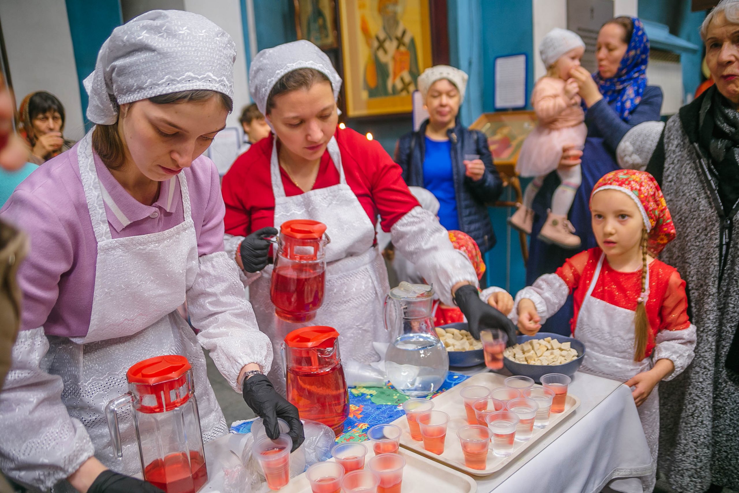 Также для верующих была устроена трапеза и чаепитие с куличами и другими сладостями.