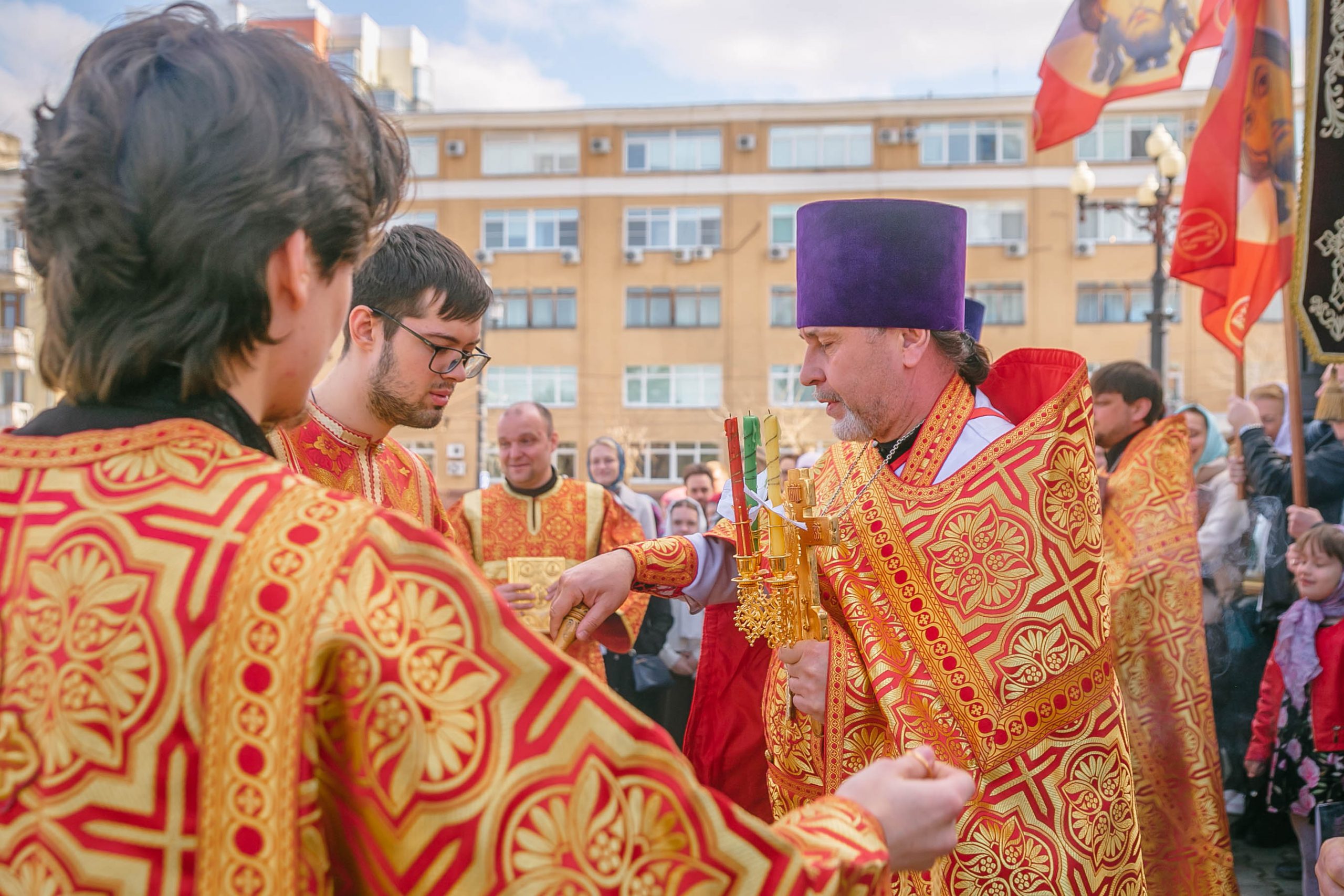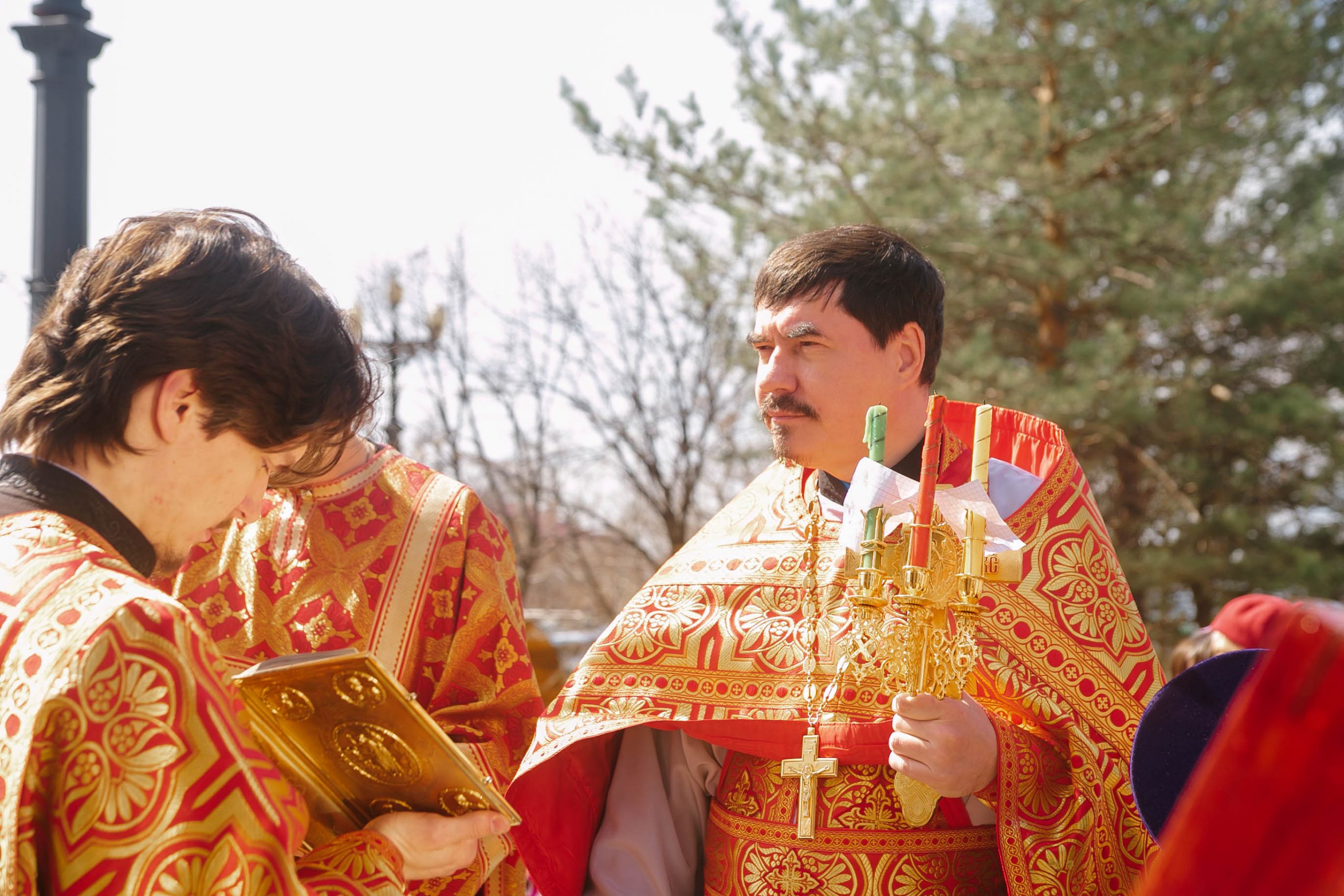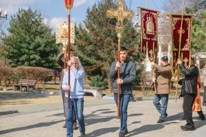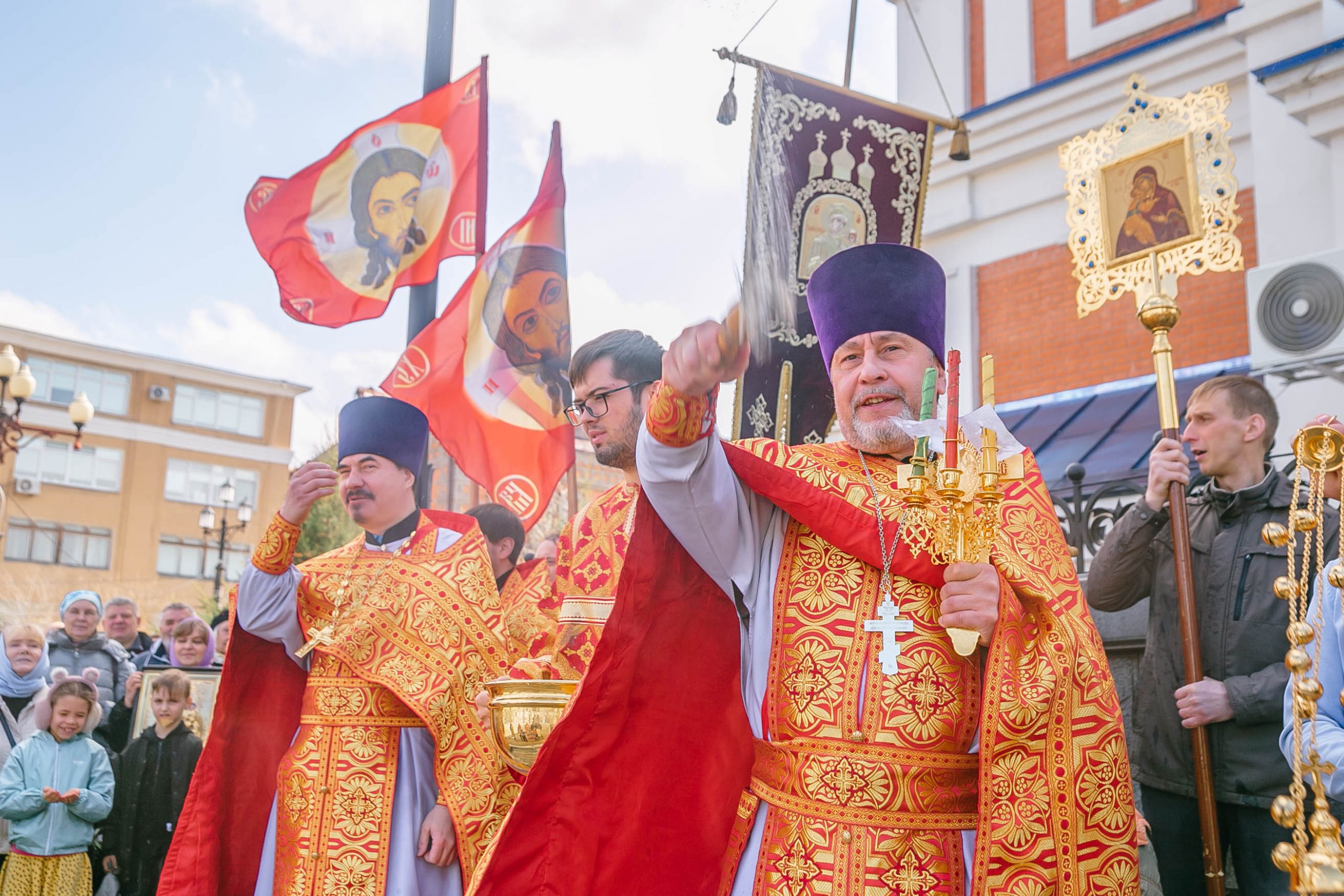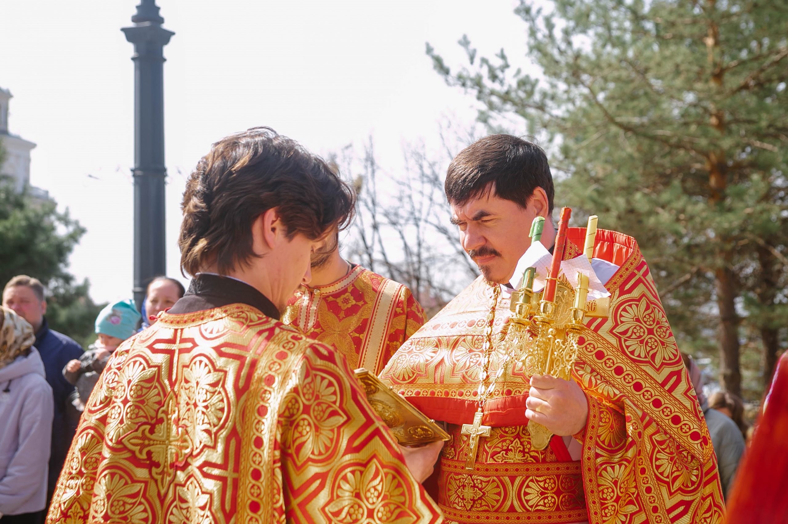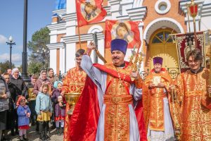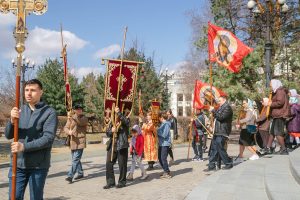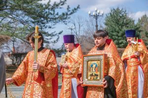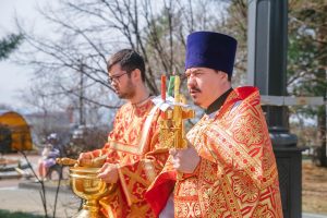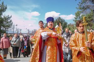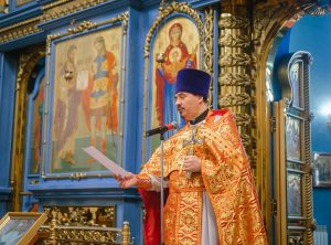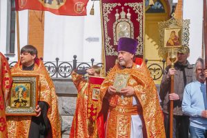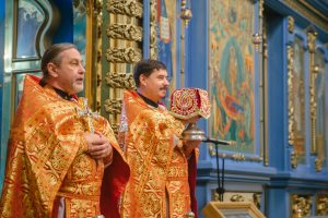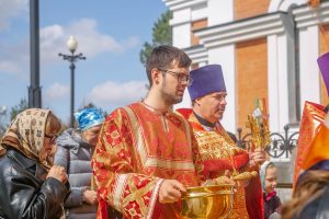 Богослужение возглавил настоятель Успенского собора иерей Дионисий Ногтев в сослужении клириков прихода. Завершилось богослужение крестным ходом вокруг храме.